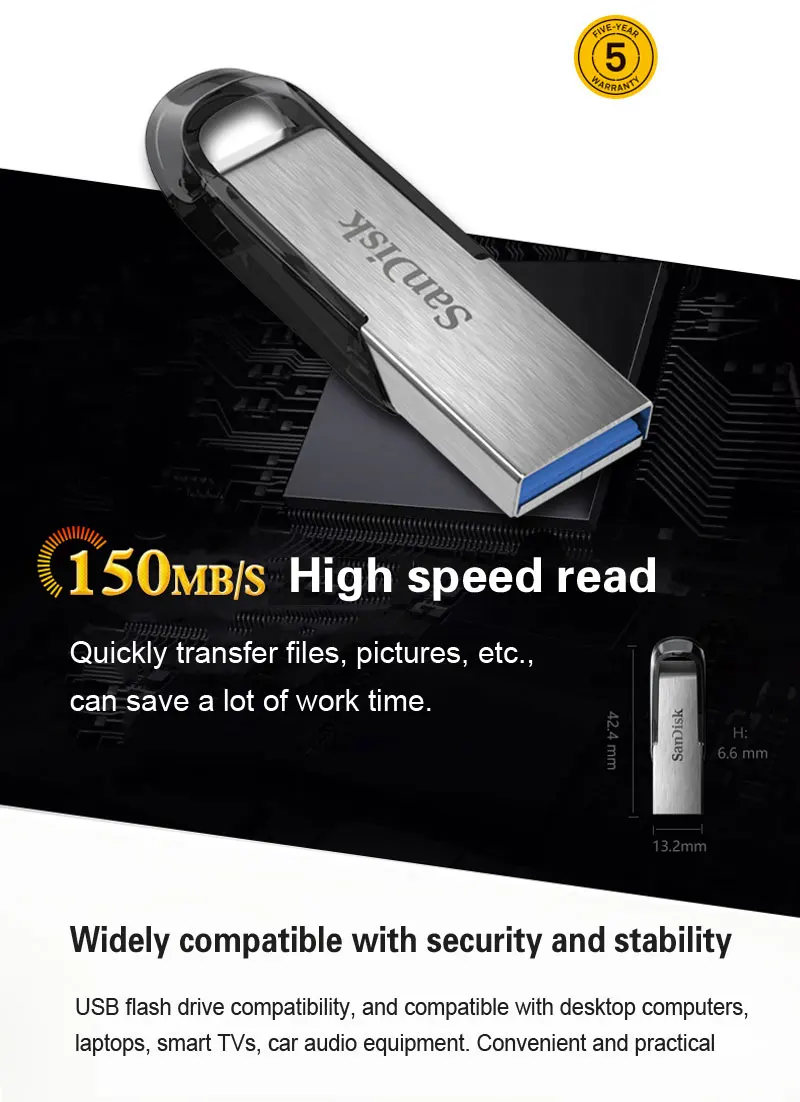 The SanDisk CZ73 USB Flash Drive offers superior performance, with USB 3.0 speeds of up to 150MB/s. Its durable metal casing and 256-bit AES encryption ensures secure storage of all your data. Available in 16GB, 32GB, 64GB, 128GB, and 256GB capacities, this USB Flash Drive comes with a 5 year warranty.