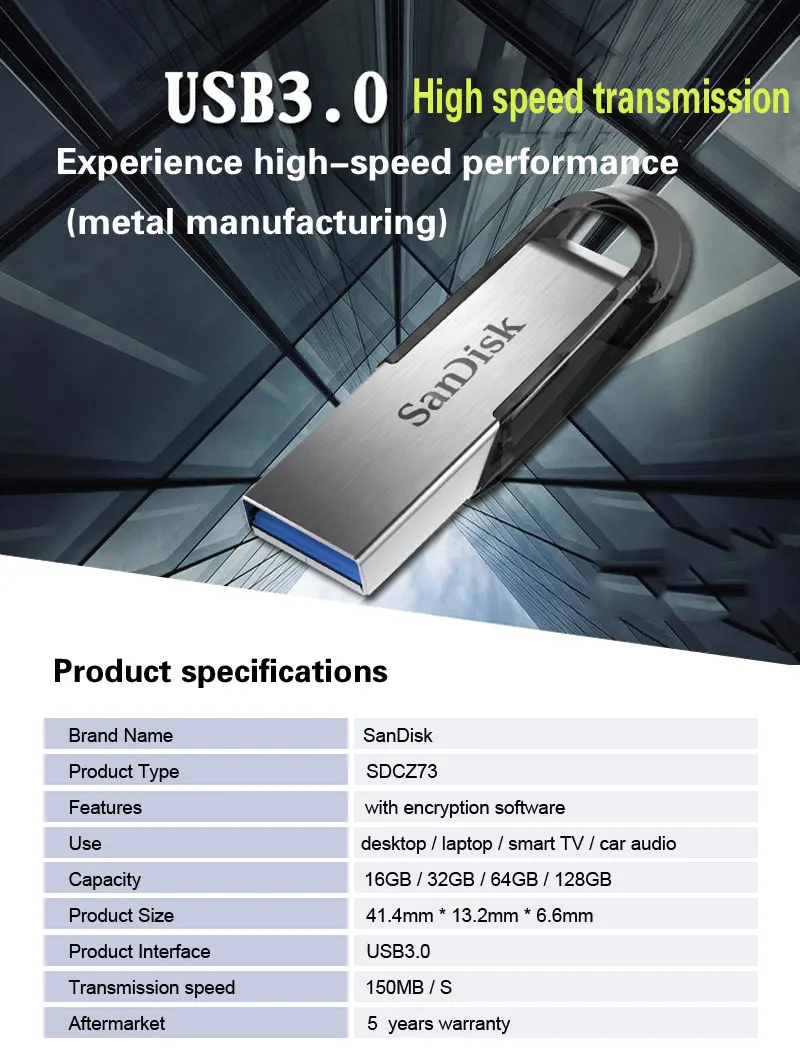 SanDisk CZ73 USB Flash Drive 256GB 128GB 64GB 32GB USB 3.0 Metal Encryption Pen Drive 16GB Memory Stick Storage Device U Disk